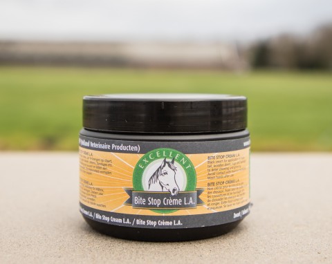 Bite Stop cream LA zwart voor paarden is regenbestendig!