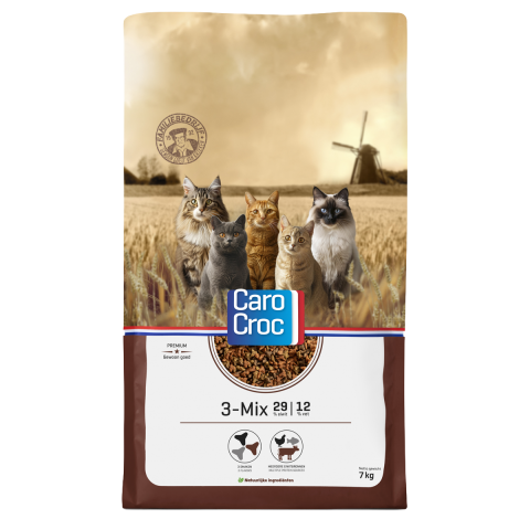 CaroCroc 3-mix is een volledige voeding voor volwassen katten van alle rassen.