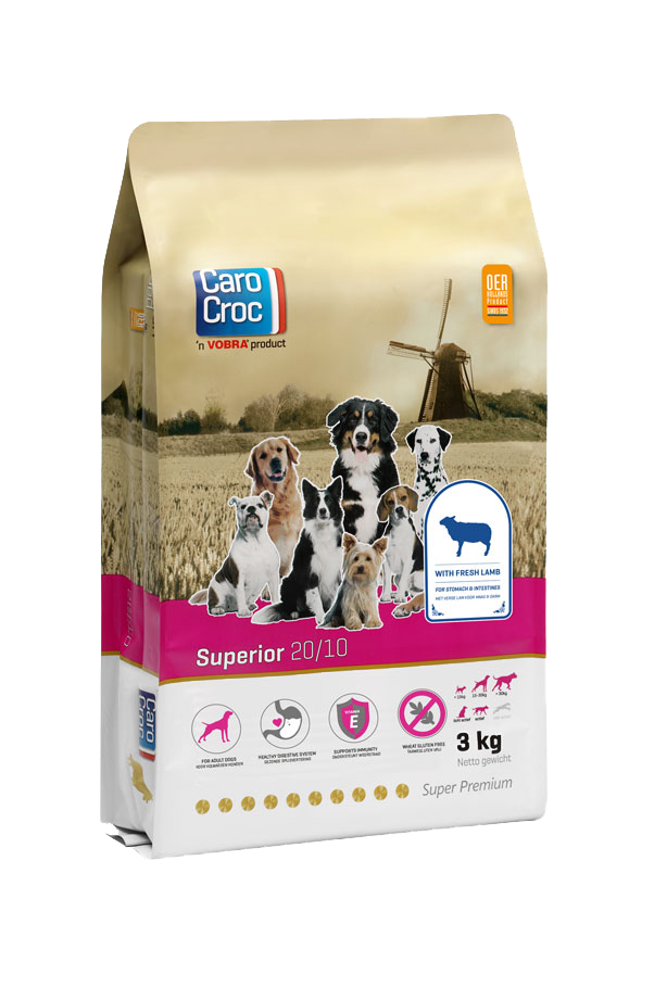 Voor honden met spijsverteringsproblemen, of problemen met huid en vacht, heeft CaroCroc Superior hondenvoer ontwikkeld.