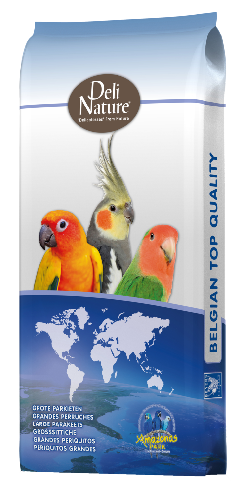Dit parkietenvoer een basismengeling voor grote parkieten, zonder zonnepitten.
