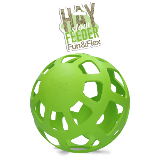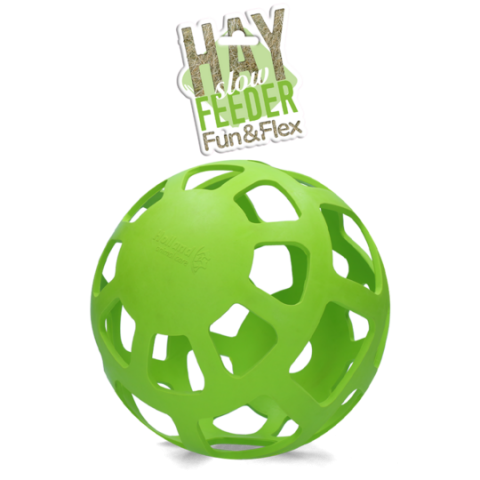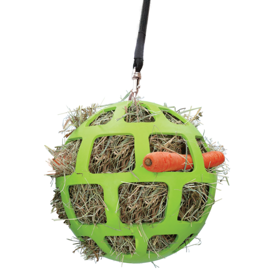 Je kunt deze slow feeder bal vullen met hooi en ander lekkers, zoals wortels, kruiden, stukjes appel ed. zodat je paard lekker lang bezig is.