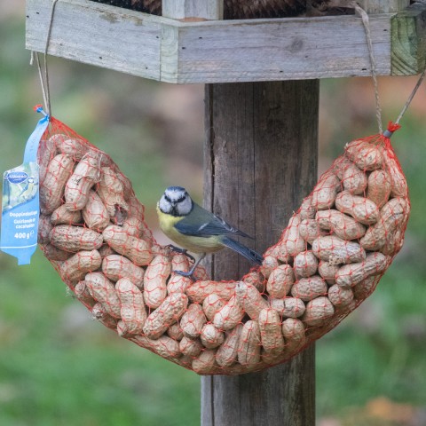 De pinda's zijn ongebrand en daarom erg gezond voor de buitenvogels.