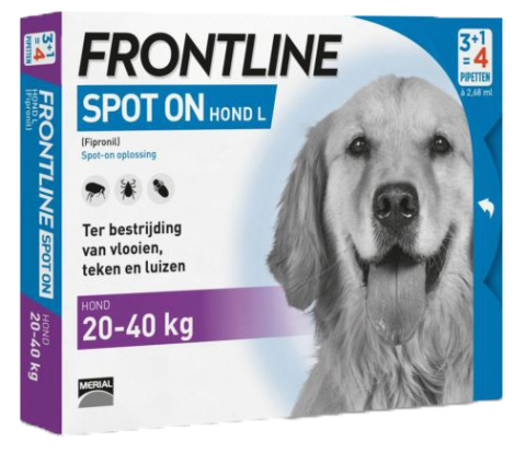 Frontline L is voor volwassen honden tussen de 20 en 40 kilo.