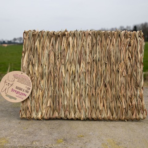 Deze slaap en speelmat of knaagmat is gemaakt van lisdodde en handgewoven.