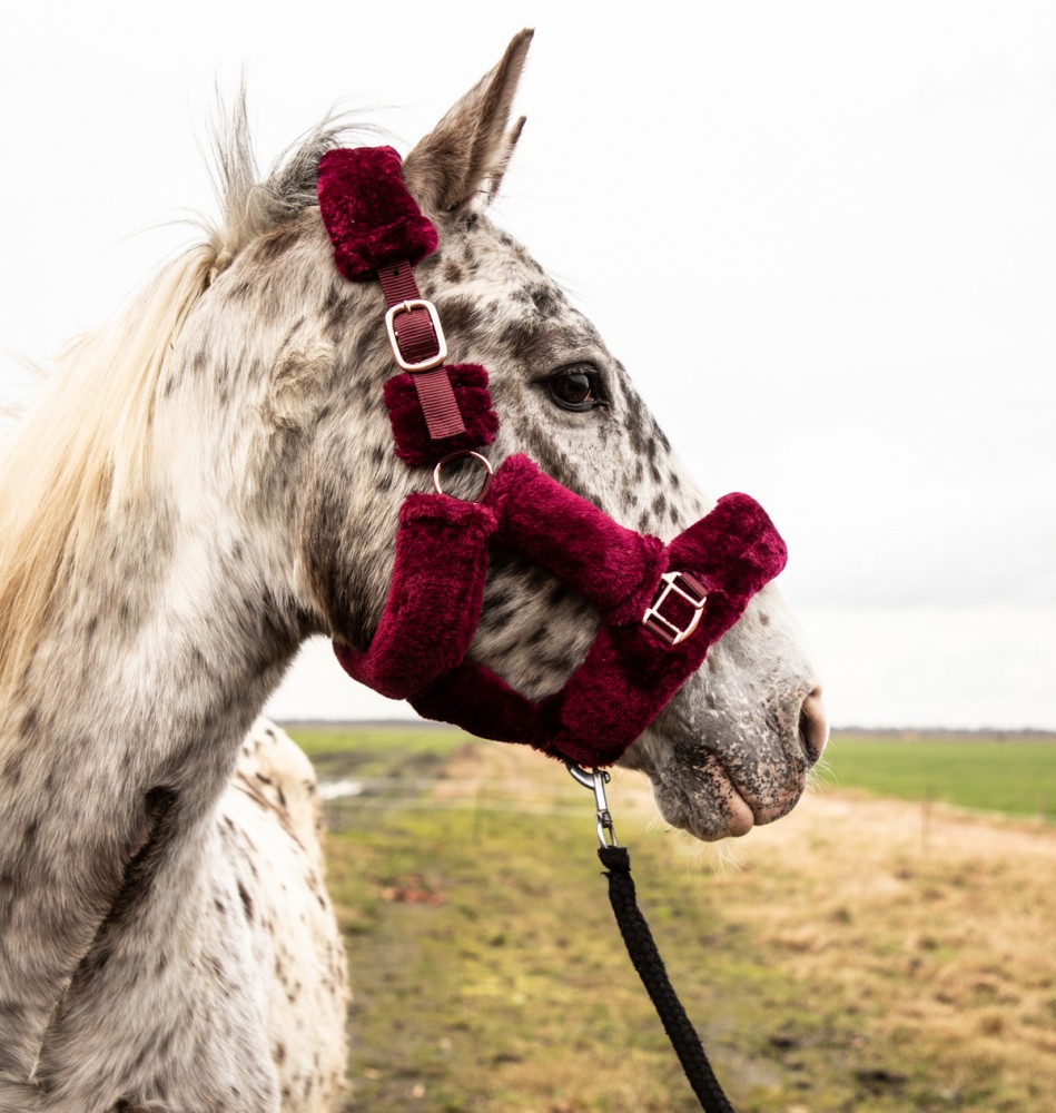Dit nylon halster is gevoerd met extra zacht fluffy materiaal en voorzien van Rose Gold fournituren.