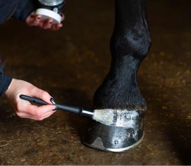 De hoeflak is makkelijk aan te brengen met de bijgeleverde kwast. De lak droogt in ongeveer 20 minuten, afhankelijk van de temperatuur.