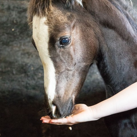 Hierna krijgt het veulen de Horsefood Jaarling/merriebrok om het een ondersteuning te geven voor de verdere ontwikkeling.