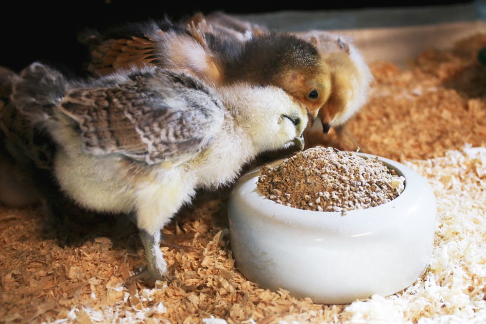 Aangeraden wordt kuikens de kuikenkruim tot ongeveer zes weken te geven.