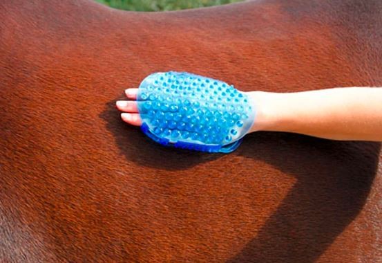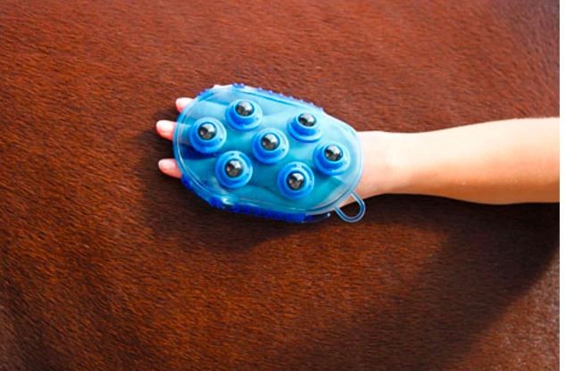 Door deze over de huid van het paard te bewegen zal het een zeer aangenaam masserend effect hebben.