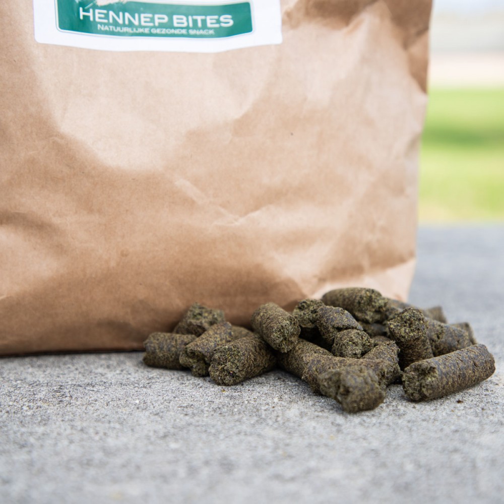 De hennep bites zijn gemaakt van 100 % hennepzaad, biologisch en van EU landbouw afkomstig.