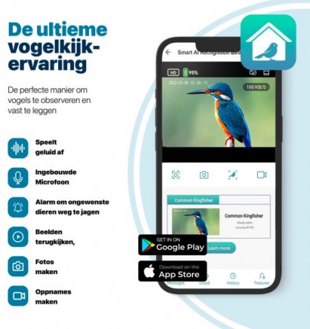Dit vogelhuisje combineert functionaliteit met geavanceerde technologie, waardoor je een intiem inzicht krijgt in het dagelijkse leven van vogels.