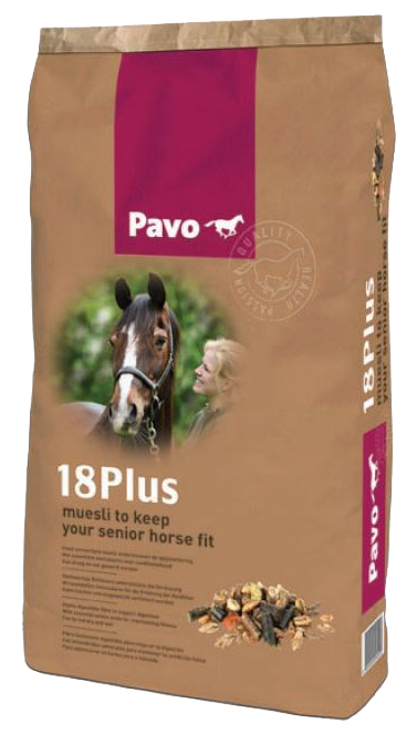 Pavo 18Plus is een hele fijne muesli voor uw wat oudere paard. Het beval alle belangrijkste stoffen zonder dat het lichaam belast wordt.