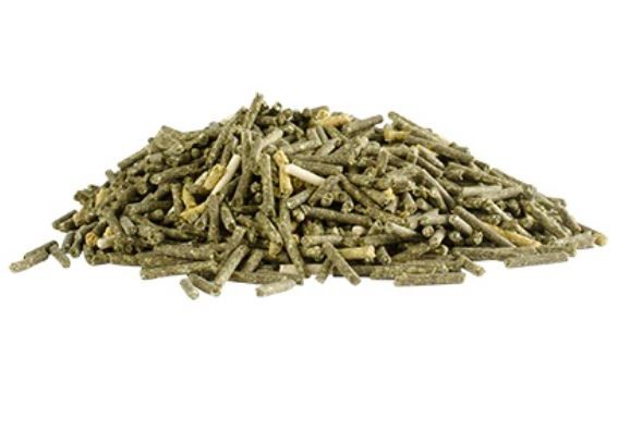Luzerne, Calciumcarbonaat, Sojabonen vlokken nonGMO, Roggevoerbloem, Lijnzaadolie, Citruspulp en Dextrose