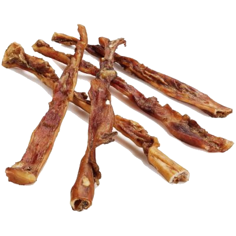 De gedroogde stukken runderkophuid zijn pure en gezonde snacks voor de hond.