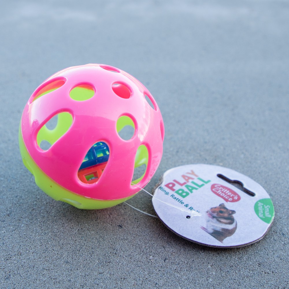 Deze speelgoedbal voor kleine knaagdieren heeft een bal met belletje binnenin.