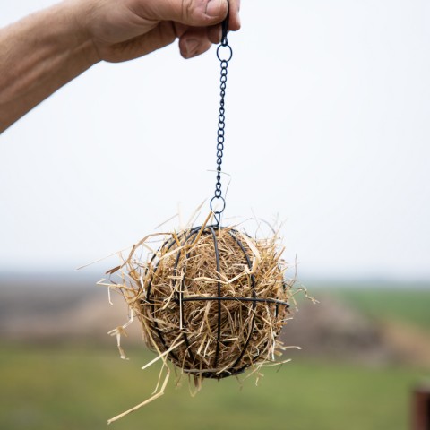 Makkelijk in de kooi te hangen zodat het dier op speelse wijze moeite moet doen voor zijn voer.