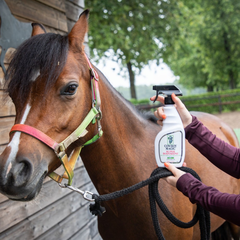 Super Bodyshine creëert een superieure glans en werkt vuilafstotend. Stof uit de stal of uit de ring is na behandeling gemakkelijk uit de haren te kammen. Dit maakt de verzorging van uw paard aanzienlijk gemakkelijker en minder tijdrovend. De langdurige werking van Super Bodyshine zal u vele bezoekjes aan de wasplaats besparen.