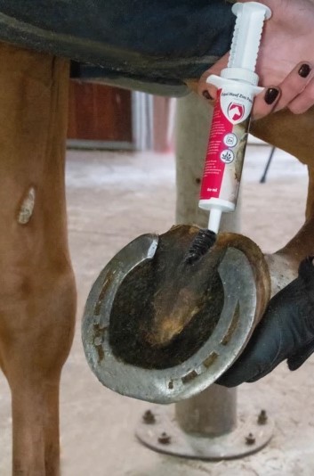 De speciaal ontwikkelde pastavorm hecht sterk, is eenvoudig op de juiste plaats aan te brengen en zorgt voor een optimale verzorging en bescherming van de hoef.