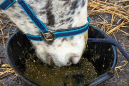 Paarden slobber een lekkere traktatie.